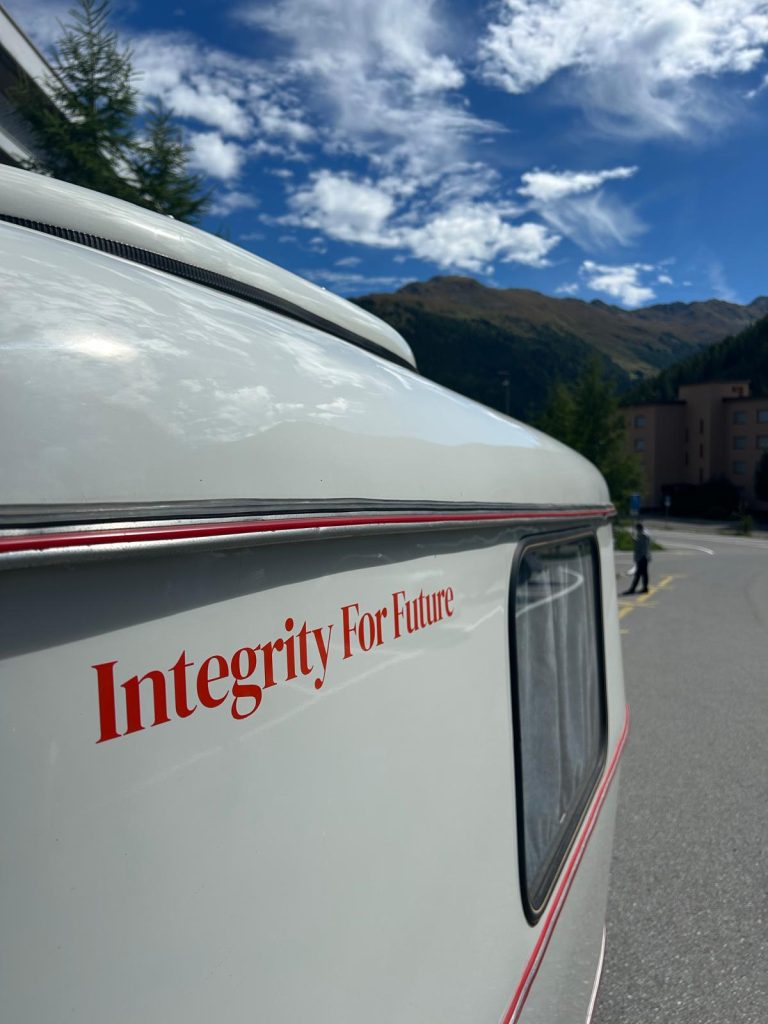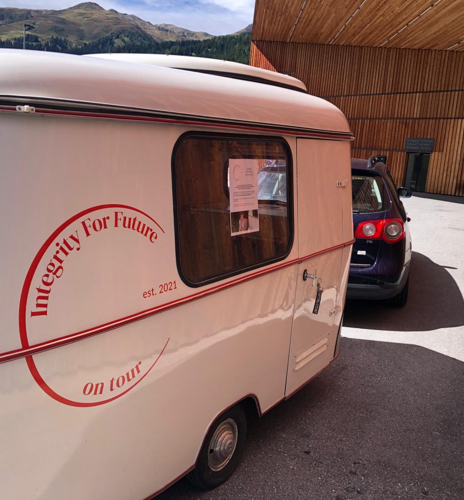 The branding was just finished when a beautiful invitation came in. In July the rolling office hit the road for the first time to carry the integrity questions to the Global SME Summit in Davos.