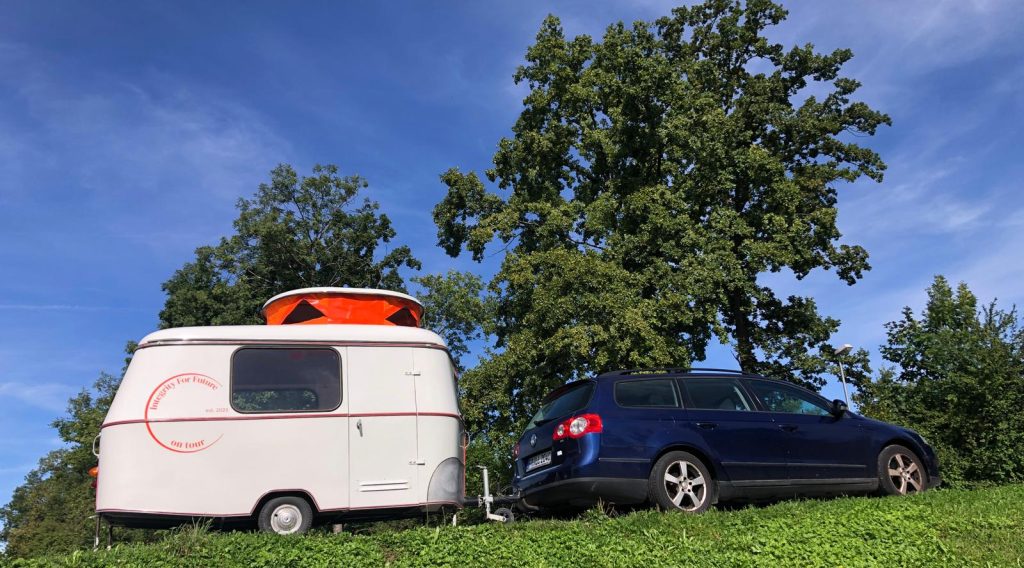 Spring 2025: thanks to the support of some passionate people who helped funding the purchase of the small caravan we could pick up “Puck” in the North of Germany and bring it home to Staufen to prepare it for its new destination.